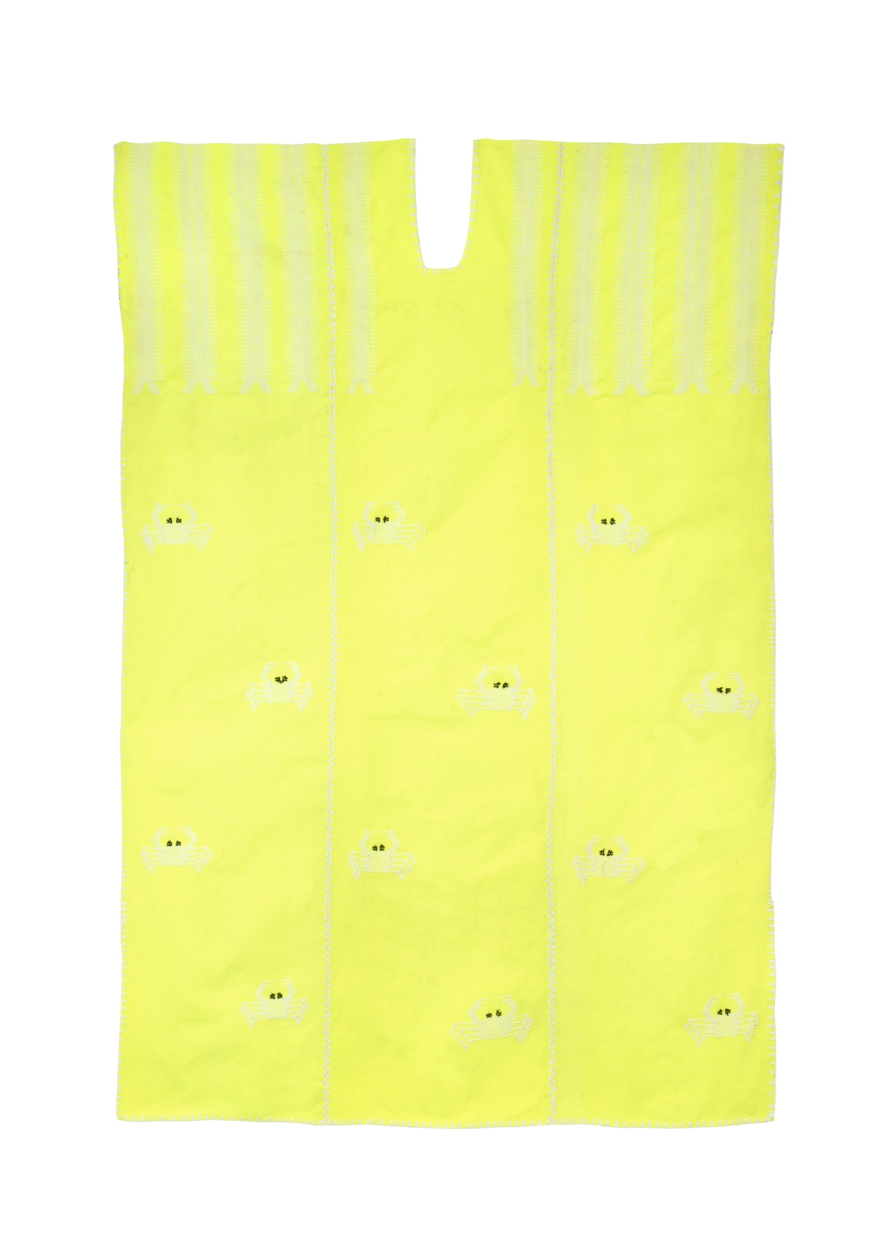 Three panel maxi kaftan in neon yellow with white crab design.