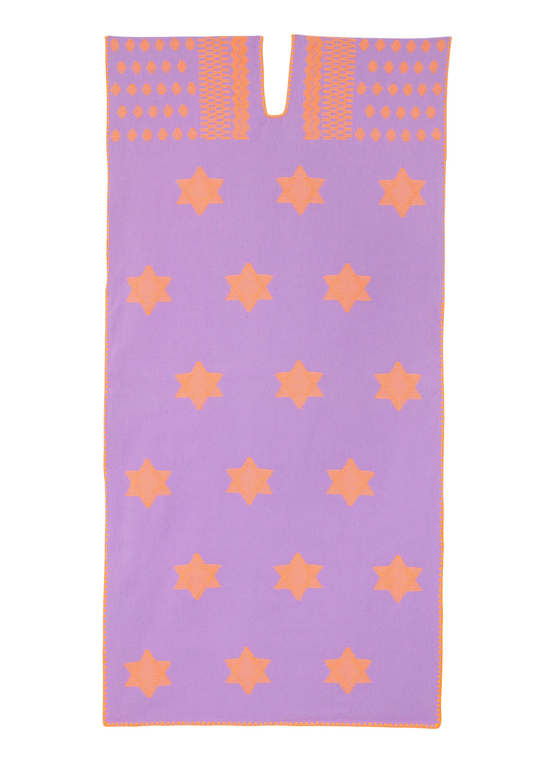 Single panel midi kaftan in lilac with orange star design.